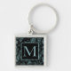 Abstract Shattered Glass Blue Pattern Monogram Fyrkantig Silverfärgad Nyckelring