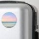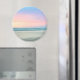 Round photo magnet with an abstract looking sunset over the North Sea and the blowing sand at the beach of Kijkduin in the Hague at the west coast of the Netherlands. Great relaxing image reminding of summer, vacation and Ibiza.