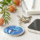 Llavero redondo premium grande con un diseño ondulado abstracto en tonos azules con efecto metal fundido.