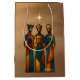 Celebrate the spirit of the season with this vibrant abstract painting of the Three Wise Men, reimagined in a modern geometric style. Each elongated, faceless figure is outlined in bold black and filled with rich blocks of color—orange, blue, green, and yellow—symbolizing unity, mystery, and reverence. Stylized crowns and minimalist gifts evoke the Magi’s journey, while the textured background blends warm and cool tones for a dynamic, festive feel. Perfect for Christmas decor, spiritual gifts, and holiday-themed merchandise, this contemporary nativity artwork adds elegance and meaning to any space.