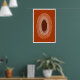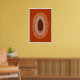 Abstrakt affisch med linjeteckning, oval form, varmbrun och orange (infattad) 1