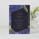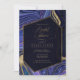 Du får både glamor och stor inverkan med den här samordnande bröllop-uppsättningen som har abstrakt mot mönster, textur med faux-kristaller och högdagrar i glittrande faux guld-folie. Stränga färg-kombinationer, som denna svit med dess nattpalett himlar från djup midnattblått till mjukt violett, skapa bakgrunden för biet i denna samordnade samling. I elegant Inbjudningskort för möhippan finns allt detta med en sexkantig, halvgenomskinlig etikett i mörk marin blå för att hålla texten. En mall finns för att enkelt lägga till din händelseinformation. Visa samlingslänken på den här sidan om du vill se alla matchande objekt i den här vackra designen eller sök-ID827 om du vill se ytterligare alternativ för färg för den här designen.