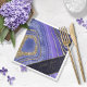 Du får både glamor och stor inverkan med den här samordnande bröllop-uppsättningen som har abstrakt mot mönster, textur med faux-kristaller och högdagrar i glittrande faux guld-folie. Genom att slå ihop färg, som den här svit med nattpaletten himlar från djup midnattsblå till mjuk violett, skapar du bakgrunden för biet i den här koordinerade uppsättningen. Den här möhippan napkin har all kalligrafi ovan plus elegant på en vinklad, halvgenomskinlig etikett som innehåller ditt namn och datum för bröllop. Visa samlingslänken på den här sidan om du vill se alla matchande objekt i den här vackra designen eller sök-ID827 om du vill se fler alternativ för färg.