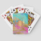 Trendigets moderna glamorösa akryl-penseldrag abstrakt målad canvas i vibrerande tealturkos, blått, shock rosa och faux guld skapar en elegant uppsättning spelkort med en faux metallisk guld kopparmongrammad geometrisk cirkel