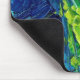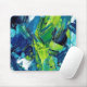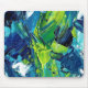 Flytande abstrakt design med breda penseldrag i blått med en touch av neon som ser ljust grön ut och ger en accent till hela designen.