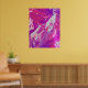 Ett handmålat akrylskikt av rosa, lila och vit färg.