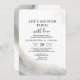 Fira kärlek med denna eleganta duschinbjudan för par, med mjuka gröna akvarellackcenter och delikat guldstoftdetalj. Den rena, moderna layouten är perfekt för att hedra båda parter i stil. Anpassa enkelt med namn, datum, tid, plats och RSVP-information. Idealisk för gemensamma bröllopsdusch, förlovningsfester eller samkönade sammankomster med en förfinad touch.