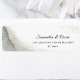 Lägg till en sofistikerad touch till din bröllopsinbjudan eller evenemangspost med denna eleganta returadressetikett. Med mjuka akvarellgröna penseldrag, skimrande guldstänk och klassisk svart scripttypografi kombinerar denna design modern minimalism med konstnärlig elegans. Perfekt för bröllop, brudshowrar eller vardaglig korrespondens — helt anpassningsbar med dina namn och adress.