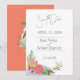 Vattenfärgning av tropiska blommor och löv. Den lilla gruppen av ljusa rosa blommor backas upp med en dammig marin blått/grönt i ett abstrakt utseende. Reversehar anpassningsbarnas fotoingång i en solid mango-orange som är omgiven av blommigtarna. Färg är uppslukat av shock rosa och soluppgång för sommartidningar eller kustdestinationer. Datumkortet har en unik stil i calligraphy och går tillbaka till vignette ram-fotot med text för bröllop webbplats under. Boho-chicen känner sig, men är underbar för alla romantiska teman.