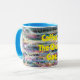 Den här söten, färglöst mugg, har min ursprungliga fotografiska bild av en lätt målning, omformad till färgstarka former och mönster för att ge en kaotisk känsla. Abstrakt stil och ord har lagts till på framsidan med texten "Kaffe - Chaos Cure" för lugnande medel till en dag av kaos eller hårt arbete. Insidan och handtaget har en harmoniserad ton vattenblått. Det här är 11 uns mugg, bara den perfekt som är storlek för ditt bryggkaffe eller te - eller till och med hett choklad! Det skulle vara en underbar gåva, och man kan lägga in paket kaffe, tepåsar eller hett choklad. En annan presentidé är att lägga en liten växt i den för att göra extra speciellt för din älskade.