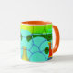 En färgstark konstnärlig abstrakt med grundläggande former i gult, rött, blått och grönt. Det finns lagrar av cirklar, fyrkanter, rektanglar, lådor, sfärer och övertonande färg med ljust gräns. #kieemug