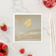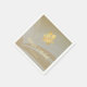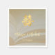 Kinesiska napkins har en konstnärlig symbol för dubblans lycka i guld på en beige abstrakt konst. Bride och groom namn i ett handskript i modern elegant. .
