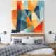 Abstrakt Vinklar för blått och Orange har ett inkapslat samspel mellan geometriska former som är lagrade med klara blått- och orangar. Den här vattenfärgssammansättningen ger modern sofistikering och konstnärligt djup till alla utrymmen.