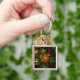 Abstrakt av fraktalblommans utformning. fyrkantig silverfärgad nyckelring