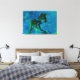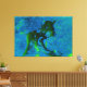 ZoeSPEAK:s blå och ursprungliga abstrakt på det här retcherade Kanvastrycket är gjord av ett originalfoto av vit kalksten i en sandlist på stranden. Den gröna formen av mörk och kalk ser nästan ut som ett djur i akvblått vatten.