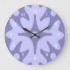 Den här vackra dekorativa väggklockan har ett blommönster i abstrakt i lylack, mun och lila. Siffrorna är vita och kan nollställas om du föredrar en enklare design.