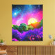 Abstraktens konstnärliga landskap inspirerat av rymden och tropiken. Blandning av magisk färg som lila, grönt och rosa. Idealisk stil för vardagsrum, sovrum eller barnrum.