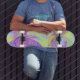 Abstrakt teckningar som visas på en skateboard.