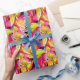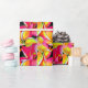 Neon rosa , orange och gult med originalkonstform från vattenfärgsmålning av Sacha Grossel av tropisk rosa, gult och orange Frangipani Plumeria blommor i nära fokus, stil. Denna ljusa, färgstarka, botaniska utformning av blommigt påminner om sommar, surfa, hett och att den ligger nära stranden. Färgstark och klar!