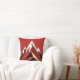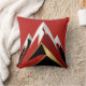 Modern Abstrakt Design Av Bergskedja På Kudd, Med En Röd Bergskedja Med Svarta, Guld Och Vita Accentuella Toppar På En Röd Bakgrund.