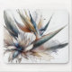 En känslig sammansättning har en abstrakt av paradisblomma i blått, grönt och orange.
