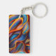 En abstrakt i funkyn som är mycket blå och röd tittar.