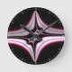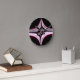 Den här rundväggsklockan har abstraktens symmetriska frakttalkonst i svart, vit och mörk rosa övertoningskonstruktion och vita minut- och timmärken som kan tas bort i Design verktyg.