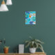 Abstrakt Blått och orange vattenfärg poster att utskriften är ljus och roligt, det ser ut i ett barnrum eller i ett vardagsrum.