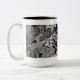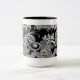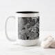 Denna whimsically designade mugg smyckas med hand plockade inspirerad blommigt genom att använda vitbläck på en svart bakgrund.