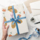 abstrakt blommor och fjäril på mjuk gult boho presentpapper