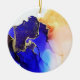 Snygg alkoholkonst i bläck på ett prydnadsföremål. Dekorera ditt hem med en ursprunglig abstrakt av internationell konstnären Pauline Benjes. Abstrakt Blue Citrus Guld Ceramic Ornament.