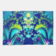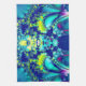 Abstrakt kökshandduk med fractal konst i vibrerande färg: blått, cyan, neon grönt och lila.
