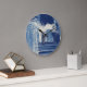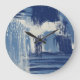 En abstrakt med frihandsformer och märken i en blå och elfenbenspalett i färg.
