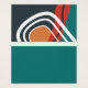 Abstraktens retrolinjekonst. Hand plockade-regnbågsdesign. Boho-teckningar, blå röd terracotta teal white färg.