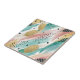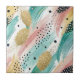 Den sömlösa keramiska plattan i abstrakt mönster har breda, uttryckliga penseldrag i mjuka nyanser av teal, rosa och ljusblå över en ljusgräddbakgrund. Spridningen under hela designen är kluster av punkter - en del fasta i djup blått eller svart, andra som skakar i guld med texturerade, nätliknande detaljer. Ytterligare guld-spektrum och större gyllene prickar ger en aning elegans och dynamiskt synintresse. Resultatet är en modern, konstnärlig sammansättning som är både livskraftig och förfinad.