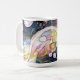 Swirling, flerfärgat rosett band och bubblor flyter mot mörkens bakgrund och skapar en pulserande, drömmande atmosfär. Sammansättningen omfattar olika nyanser av blått, rosa, gult och grönt, med känslig linjer och vätskerörelse.