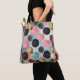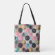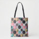 Den här sömlösa abstrakten mönster till väskan har en livlig arrangemang av cirklar i olika storlekar och struktur över en drömmande övertoningsbakgrund. I cirklarna ingår texturerad penselmålad stilar i rosa och teal, krympande punkter i guld glitter och svarta cirklar som är fläckiga för att ge en stjärnliknande eller konfektliknande effekt. Utformningen är fet, konstnärlig och fullt av rosa, orange, gult, blått och grönt. Den är tvättat för moderna, kreativ eller festliga teman.