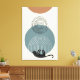 Abstrakter och bågar med moody svart katt. Färg av grädde, dammblått, terracotta och svart.