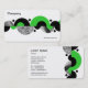 En affärs-/profilkortsmall med abstraktens motiv bestående av halvledarformer och cirkelformade prickar som löper vågrätt. Företag namn och affärstyp på framsidan. Namn och all annan kontakt på motsatt sida med en lodrät av motivet på högerna. Redot kan anpassas efter dina uppgifter och passar för många typer av företag.