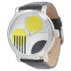 Abstrakt designillustration med geometriska (cirklar och rand) former dekoration i gult och svart färg på vit bakgrund.