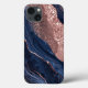 Elegant abstrakt konst med marinblå och roségulda toner och intrikata marmorerade och spruckna mönster, som inger sofistikering och kreativ inspiration för dekoration eller konstnärliga projekt.