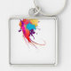 Abstrakt Exotic Butterfly Paint Splatters Fyrkantig Silverfärgad Nyckelring