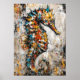 En livfull abstrakt expressionist sjöhästavbildning skapad med djärva texturer och uttrycksfulla färgsprut. Detta samtida havsinspirerade konstverk fångar det känsliga marina livet genom dynamiska penseldrag, vilket gör det till en slående kustnära väggkonst perfekt för strandhus och havsrelaterad inredning.
