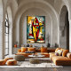 Detta abstrakta expressionistiska konstverk omtolkar en surfbräda som en symbolisk vertikal form genom djärv geometri och uttrycksfulla texturer. Levande färger och dynamiska linjer betonar känslor och abstraktion snarare än bokstavlig representation, vilket skapar ett slående modernt konstverk för kreativa interiörer och samtida utrymmen.