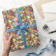 Ett konetti-tapearkiv från färg utgör denna abstrakta design. Bakgrund i guld-folie.