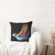 En levande och färglös fågel framställs mitt under flygningen med en slående mängd ljusa orange, blått och grönt hues på vingar och kropp. Dess geometriska utformning ger en modern och abstrakt beröring. Svart bakgrund