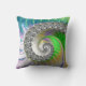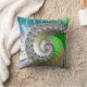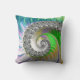 Den här vackra dekorativ kudde har en abstrakt spiral-fraktalövertoning i nyans av grönt, gult, lila och vitt.