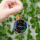 Den här nyckelringen har en svart banderoll med monogrammet ljusblått i mitten och ditt namn i silver-skript över den. Banderollen placeras på en elegant med flera färg-dagars stil-bakgrund med guld faux glitter gängad genom utsidan. Färg som används är blått, grönt och kanelbrunt med en aning lila vid ena kant. Vackert!