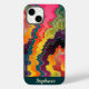 En slimmad, marmorerad design i briljanta pinkar, grönt, orangar och mörkens lila skapar en underbar telefonväska.