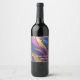 Abstrakt Flow Art - Blå Lila Rosa och Guld Vinflaska Etikett
